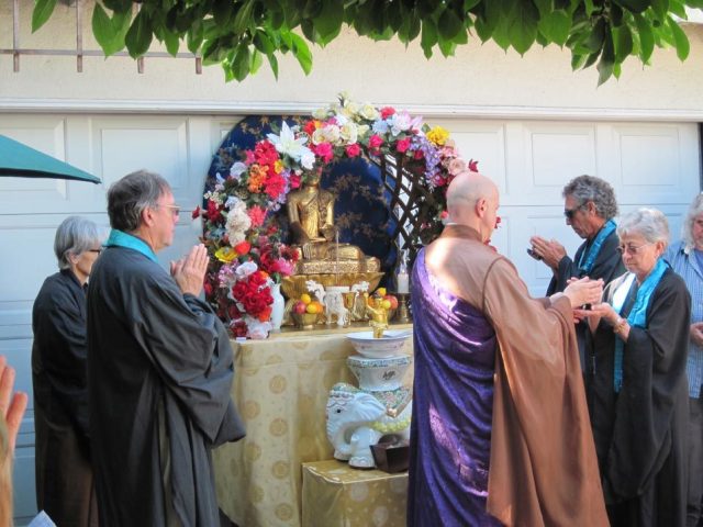 We celebrated the Buddha’s birth at our yearly Wesak ceremony on Sunday, May 6. For our temple, the attendance was unusually large and it was good to see everyone pouring water over the head of the baby Buddha and singing the Wesak hymns. The potluck had the usual dazzling array of foods and it was wonderful to have the Sangha together to express our gratitude to the Buddha and enjoy this Buddhist holiday.