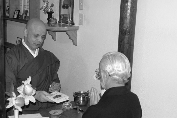 On October 27, Fred Ottens took the Buddhist Precepts at the Priory and became a lay Buddhist. Many Sangha members attended the ceremony which is a helpful way to support those who are taking these vows. The commitment to follow the Buddha is the lifeblood of the Sangha and we rejoice and are grateful for all who have vowed to be train with the Sangha.