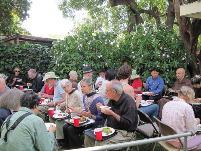 After the ceremony, the Priory will have a Dharma talk. At around 12:15 pm, we will have a vegetarian potluck lunch. All family and friends of our Sangha are welcome to come to the potluck and to share in our celebration of the birth of the Buddha. The Priory potlucks provide a wonderful offering of foods, and allow us to deepen our contact and friendship with our fellow members of the Sangha.