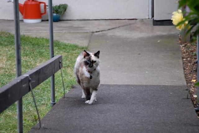 Moochi, the elderly Priory cat, died on September 28 from bowel cancer. Moochi came to the Priory in July of 2008 when her person, David Powers unexpectedly died. Moochi had a lively personality and an eloquent voice. She loved just being outside and she was still spending her days in our yard right till the day before she died. She went peacefully which was a gift since bowel cancer can be a very difficult way to die. Moochi’s funeral was on September 29 and many people came to offer their merit and say goodbye to their animal friend.