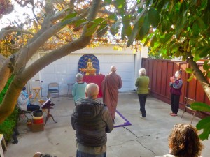 The Priory, like everywhere else in the world is living through and dealing with the pandemic. The temple has been closed for its normal daily schedule of meditation and services. Religious services have been permitted outside and we have been holding our Sunday morning schedule and day retreats outside in the Priory garden. Everyone needs to be wearing masks and maintaining social distancing. Holding activities outside in our backyard have been cancelled whenever the weather has been rainy or inclement. Yet the good fortune of being in the Bay area is that even in the winter, the weather is often mild and sunny.